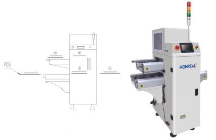1.Dieses Gerät kann die NG- und OK-Boards von AOI- oder SPI-Inspektionsmaschinen puffern. Das OK-Board gelangt in das nächste Programm, und das NG-Board gelangt in die obere Ebene der Maschine und wird zur manuellen Bestätigung an die Maschine gesendet.